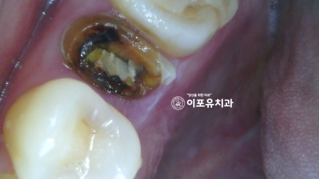 치근만 남아있는 작은 어금니가 관찰됩니다.